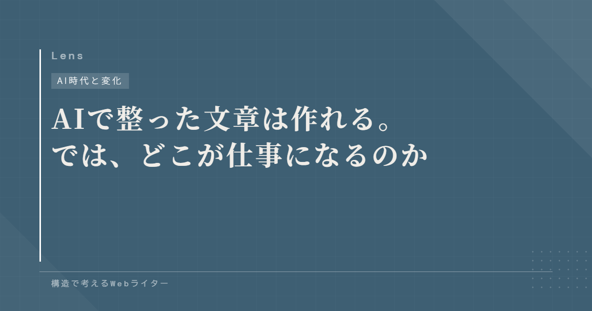 AIで文章が整うようになって、「ライターの仕事って、どこに残るんだろう」と感じる人は多いと思います。