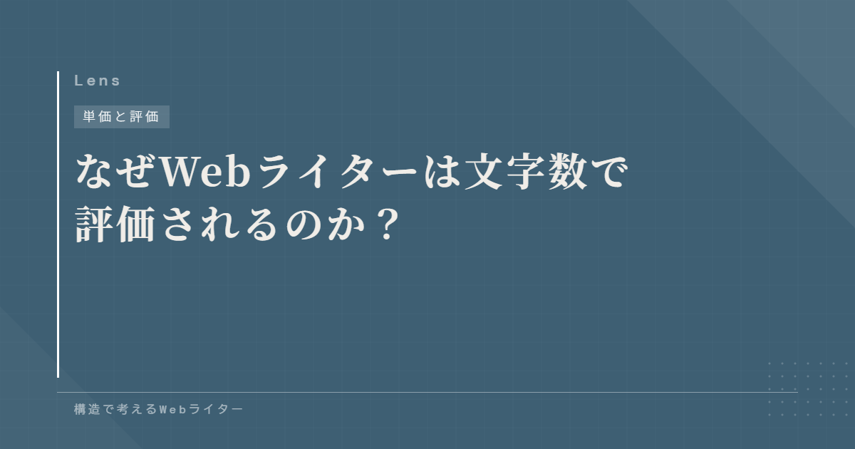 ただ、この疑問は「評価方法の良し悪し」とは別の問いです。この記事で扱うのは、文字数評価が広く使われる背景、つまり市場でそうなりやすい理由です。